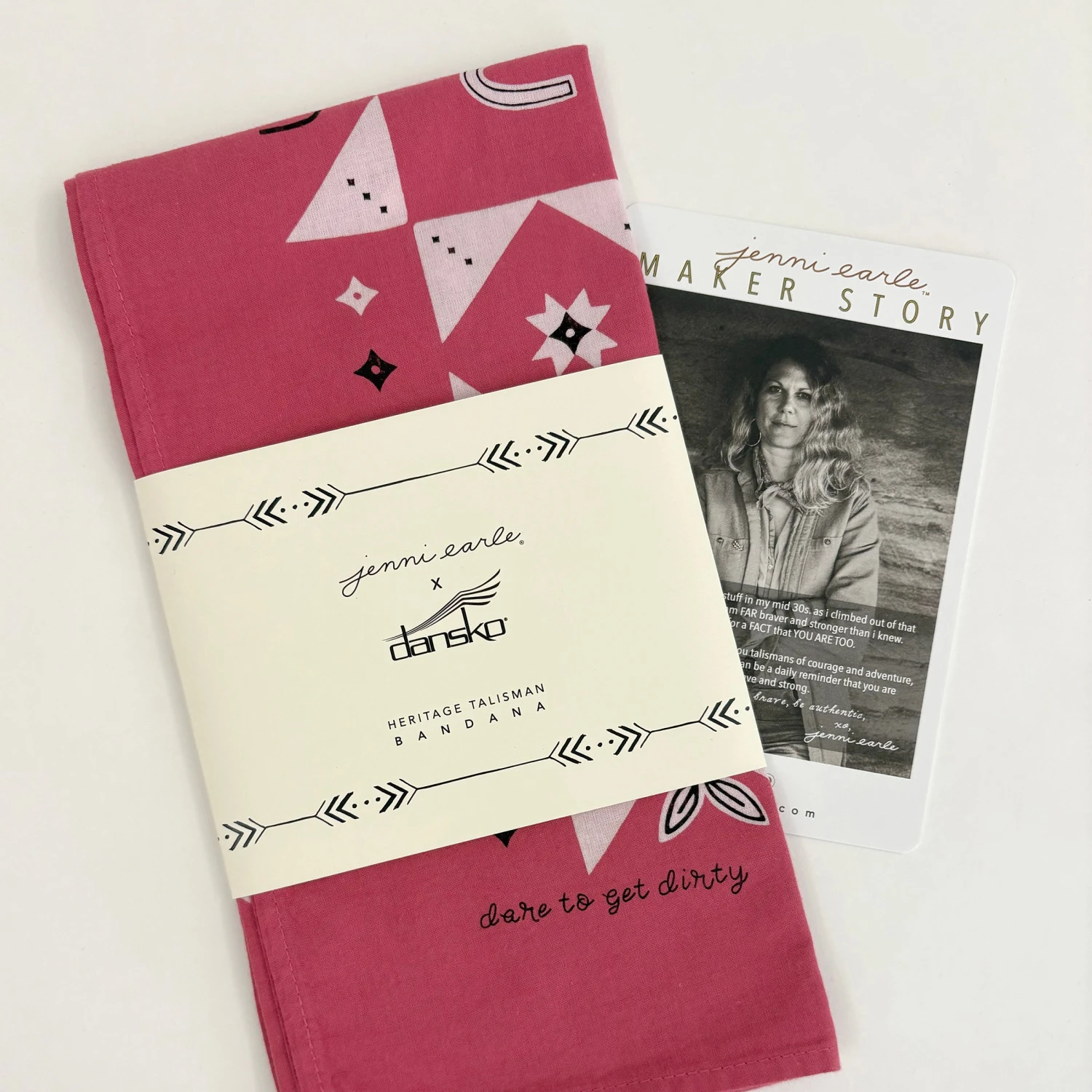 The Jenni Earle x Dansko collab celebrates the spirit and resilience of women who aren’t afraid to get their hands dirty. We gravitate towards workwear that goes the extra mile with us, like a bandana that gets softer after going through the wringer. Woven into the artwork are symbols that honor Dansko’s origin story — born in a barn — represented by the horseshoe, a nod to luck and hard work. The bird with a heart embodies the passions that take flight, a shared belief between both brands in following one’s purpose. Meanwhile, the rising sun represents the optimism of new horizons, echoing the spirit of adventure that drives both Dansko and Jenni Earle.